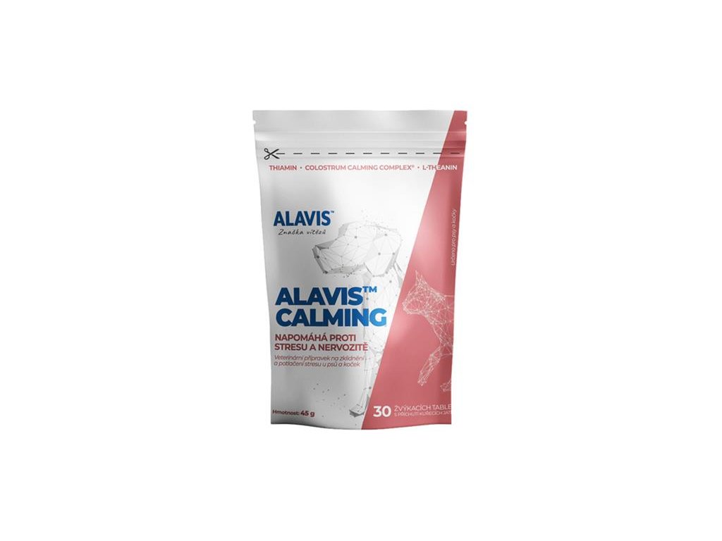 - ALAVIS ™ Calming je určený pre psov, ktorí vykazujú nervozitu, hyperaktivitu, úzkosť či reagujú na stres z prostredia.