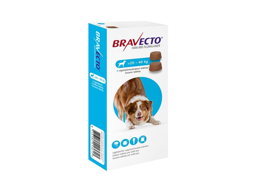 Bravecto Dog L 1000 mg žuvacie tablety pre veľké psy ( od 20 do 40 kg ) 2 x 1 tbl.