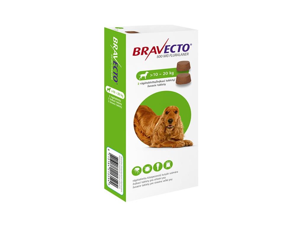 Bravecto Dog M 500 mg žuvacie tablety pre stredne veľké psy ( od 10 do 20 kg ) 2 x 1 tbl.