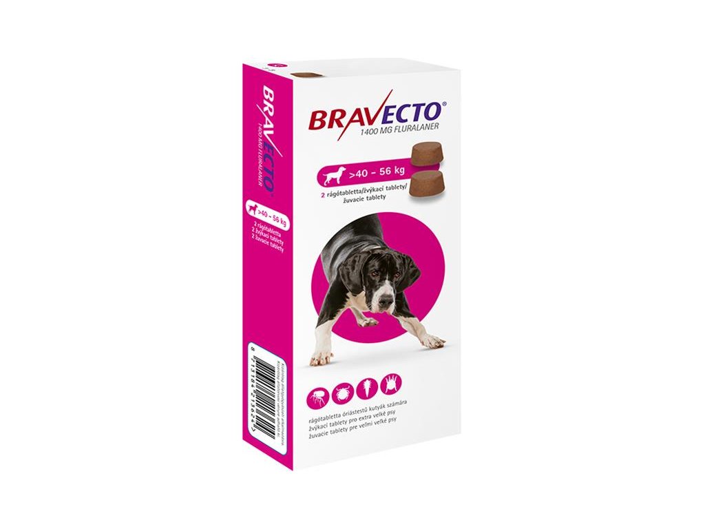Bravecto Dog XL 1400 mg žuvacie tablety pre veľmi veľké psy ( od 40 do 56 kg ) 2 x 1 tbl.