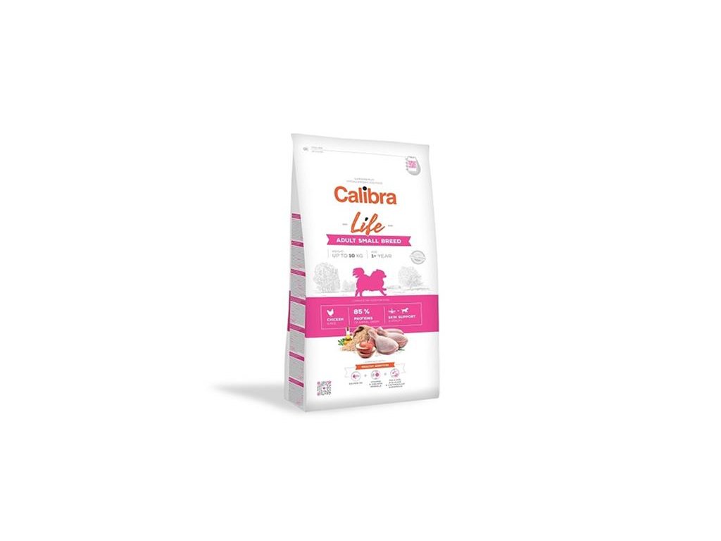 Calibra Dog Life Adult Small Breed Chicken - kompletné suché krmivo v superprémiové kvalite pre dospelých psov malých plemien (do 10 kg) so zmenšenou veľkosťou granúl. Hypoalergénne zloženie s nízkym obsahom obilnín (iba ryža) je vhodné aj pre citlivé zažívanie. Receptúra ??s kvalitným kuracím mäsom obsahuje 85% bielkovín živočíšneho pôvodu z ich celkového obsahu. Krmivo je obohatené o lososový olej pre starostlivosť o kožu a srsť. Podporu dobrého trávenia zaisťujú prebiotiká, ktorá spolu s vitamínmi a minerálmi starajú o celkovú vitalitu psa.
