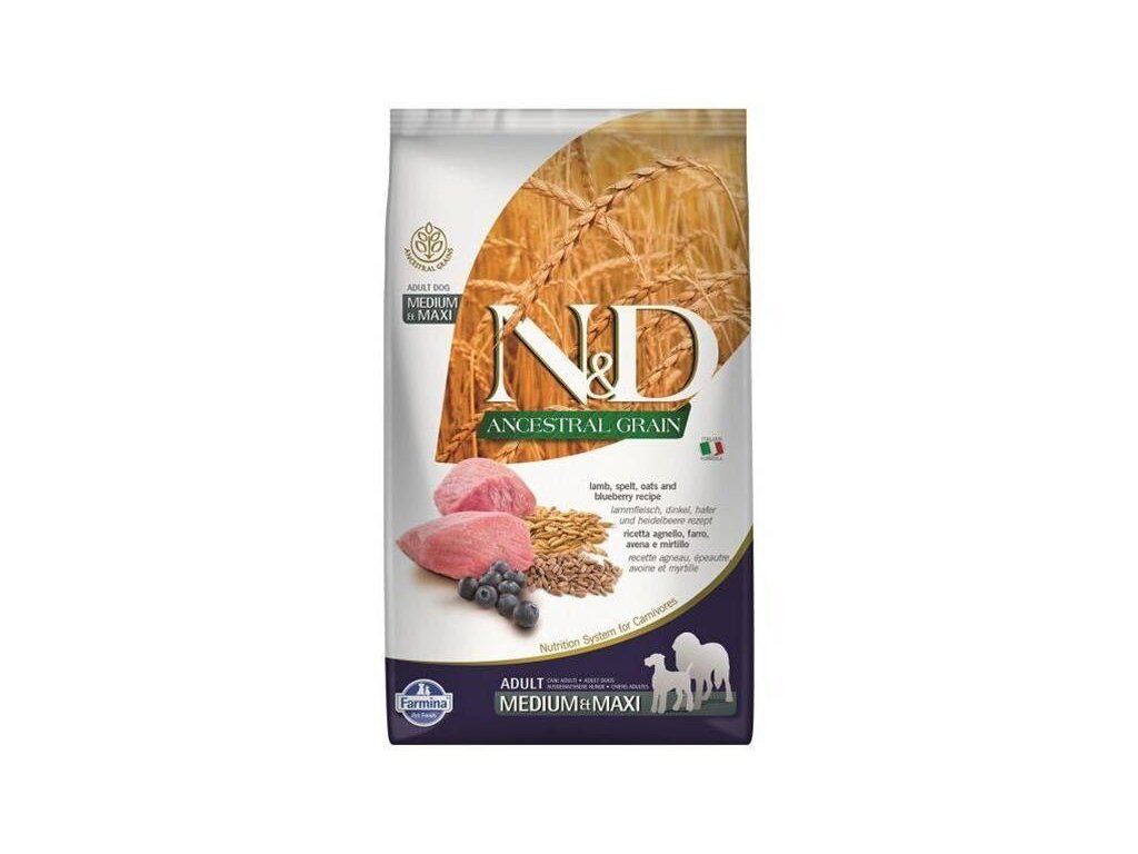 Farmina N&D dog AG adult medium & maxi, lamb, spelt, oats & blueberry 12 kg