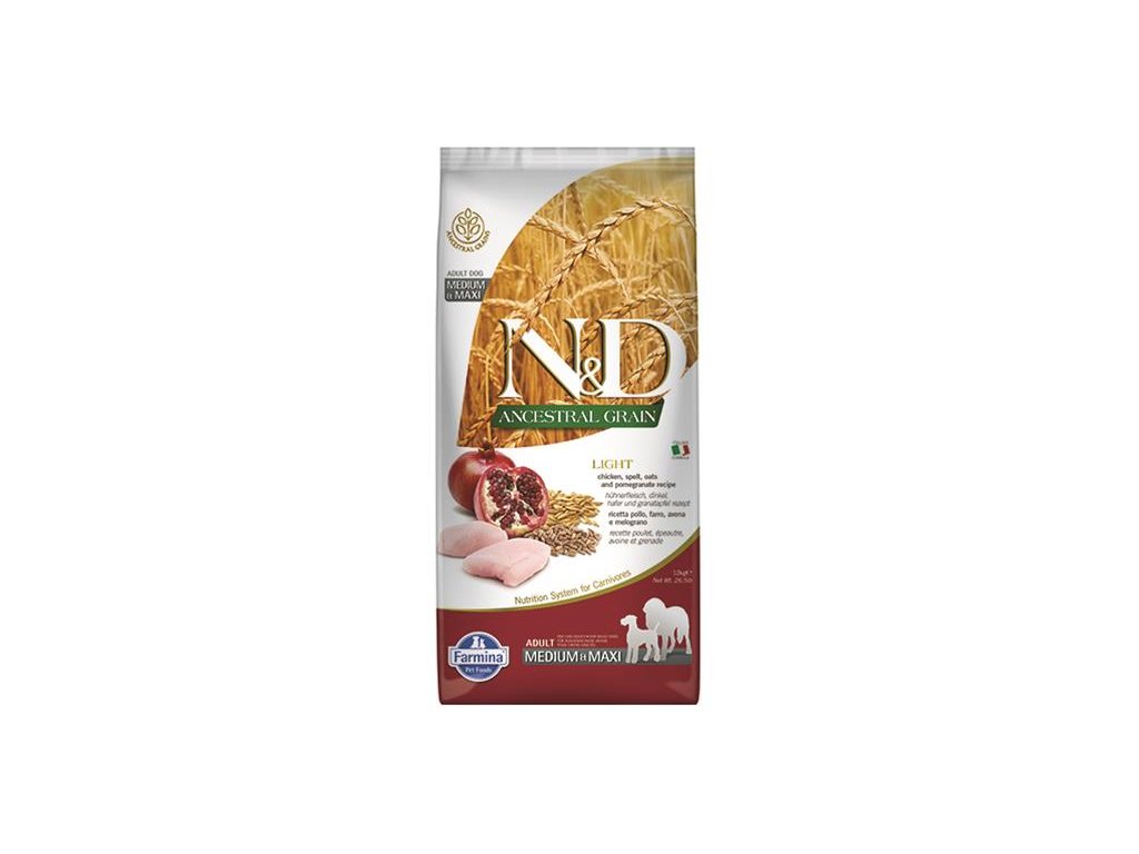Farmina N&D dog AG adult medium & maxi, light, chicken, spelt, oats & pomegranate 12 kg