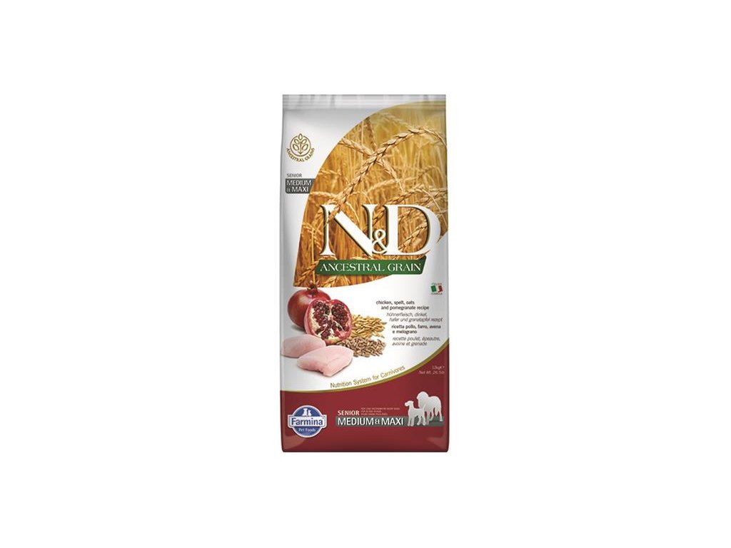 Farmina N&D dog AG senior medium & maxi, chicken, spelt, oats & pomegranate 12 kg