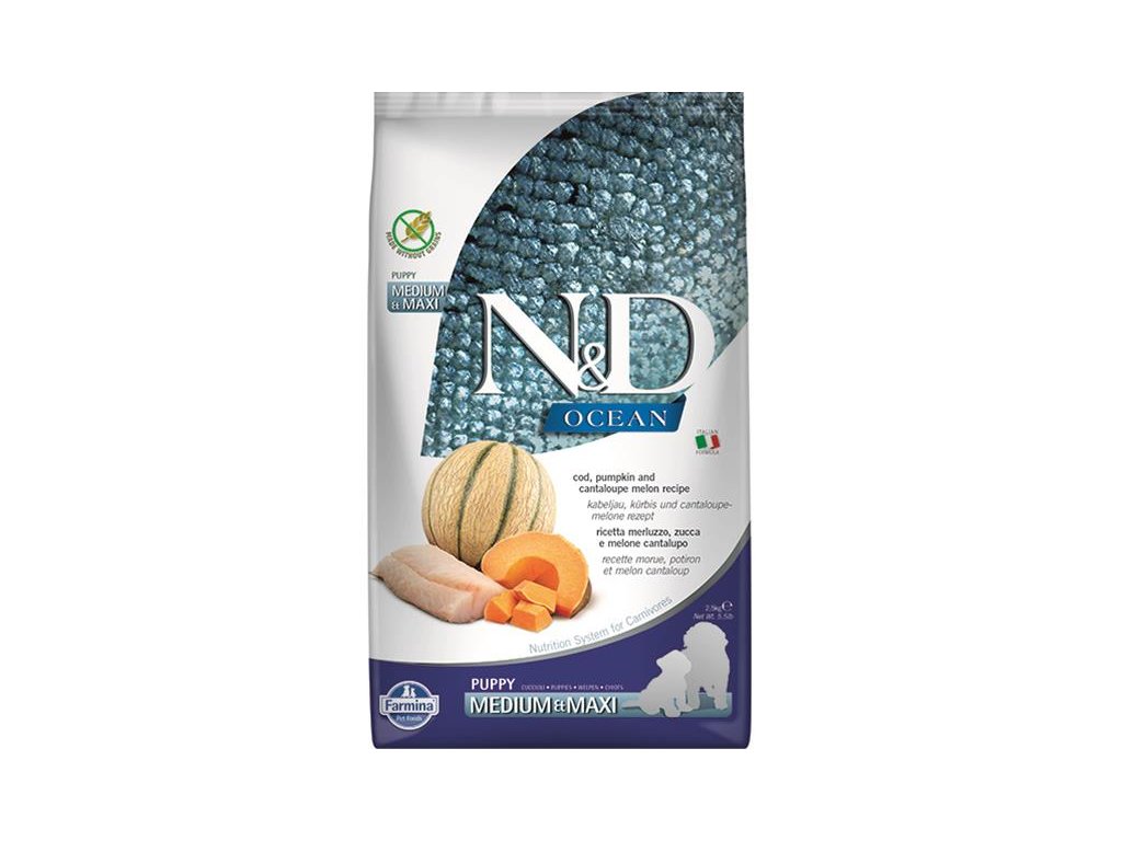 Farmina N&D dog OCEAN PUMPKIN (GF) puppy medium & maxi, cod & cantaloupe melon 2,5 kg