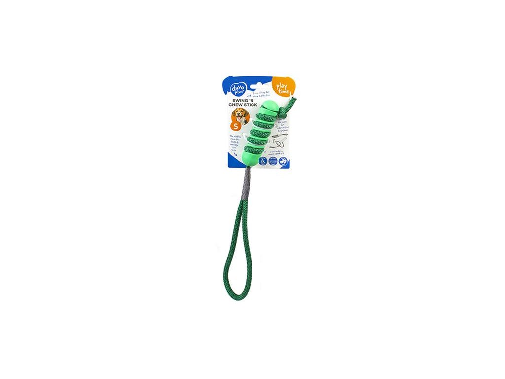 Hračka DUVO+ gumená 2 v 1 na špagáte, zelená, S-12,2×3,2×3,2 cm