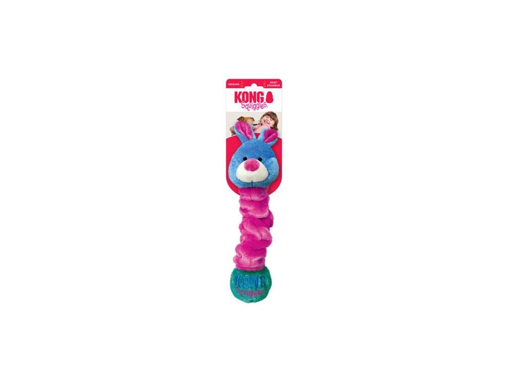 KONG Squiggles Postavičky sú pružné, poddajné a piskľavé zábavné hračky pre psov. Tieto farebné hračky sa dodávajú v sortimente štyroch roztomilých postavičiek a vyznačujú sa dlhým, pružným telom - plus majú pískadlá na oboch koncoch.