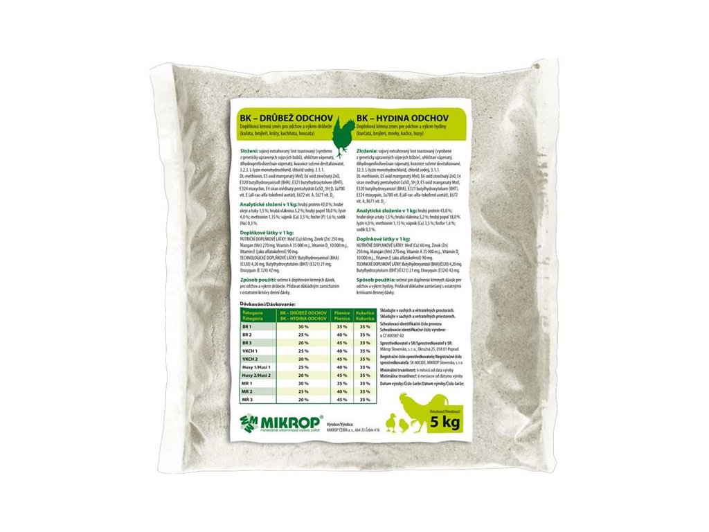 Doplnková kŕmna zmes pre odchov a výkrm hydiny (kurčatá, brojleri, morky, kačice, husi).