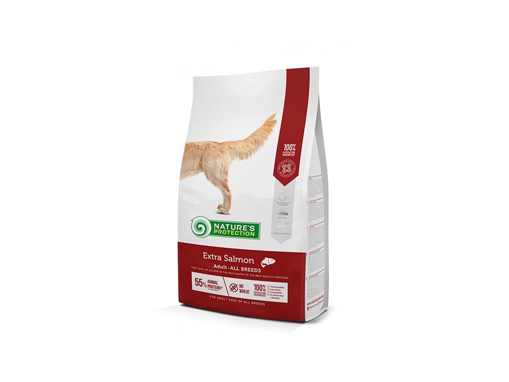 Superprémiové krmvo pre dosp. psy všetkých plemien s vysokým obsahom lososa, min 14% (sušený a najemno pomletý), ryža, kukurica, kukuričný lepok,kukuričná múčka, hydinový tuk, jačmeň, dužina z cukrovej repy,dynamicky mikronizovaný klinoptilolit (1%)