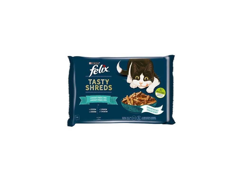 Nestlé FELIX Tasty shreds cat Multipack losos&tuniak v šťave kapsička 4x80 g