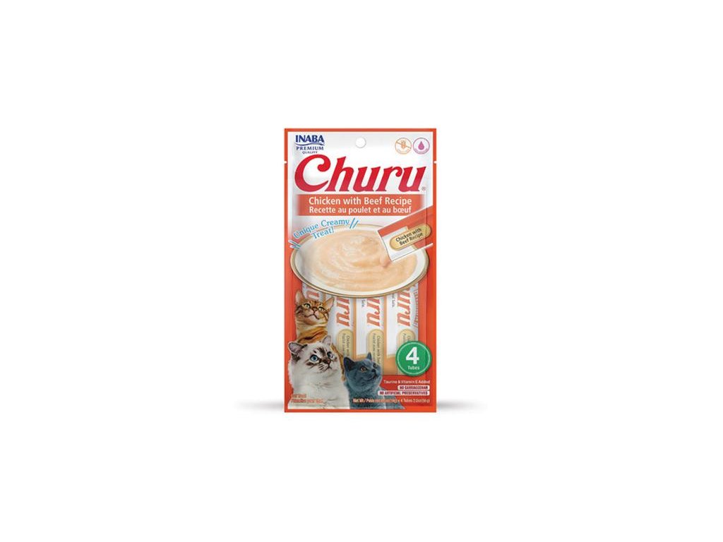 Pamlsok Inaba Churu Pyré cat Kura s hovädzím mäsom 4 tuby 56 g