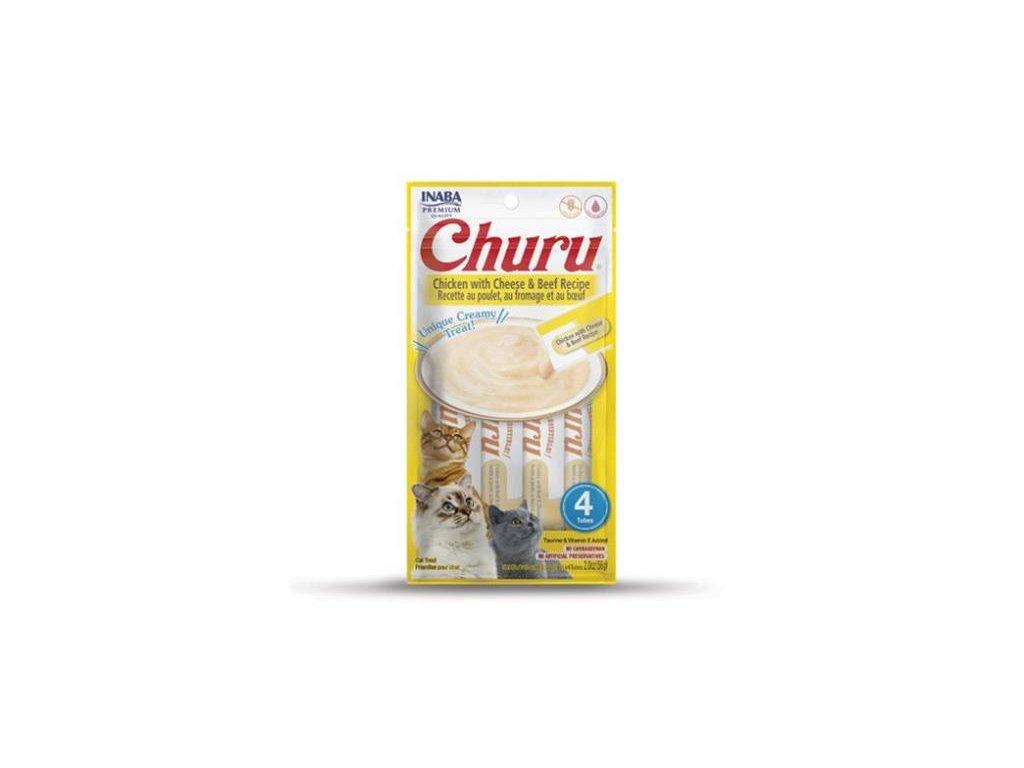 Pamlsok Inaba Churu Pyré cat Kura so syrom a hovädzím mäsom 4 tuby 56 g