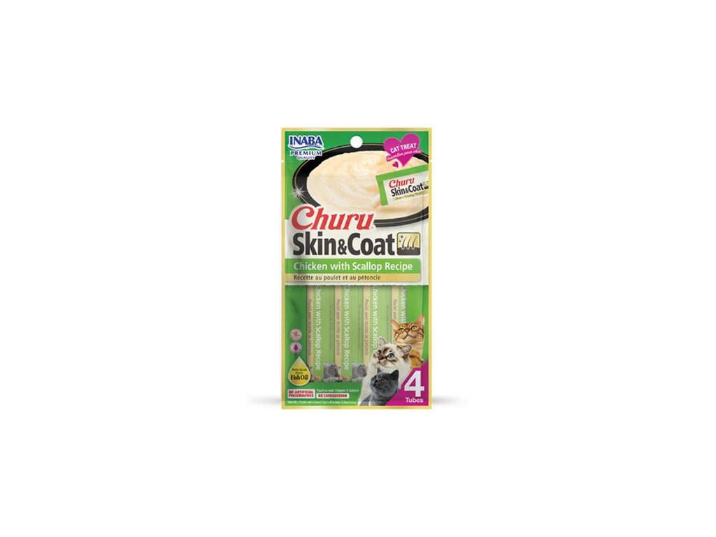 Pamlsok Inaba Churu Skin & Coat cat Kura s hrebenatkou 4 tuby 56 g