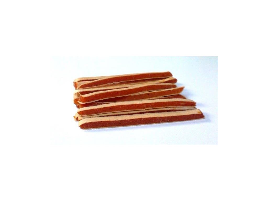 Zloženie: lososové mäso 55%, treska 30%, kukuričný škrob 4%, rastlinný proteín 7%, konzervanty.