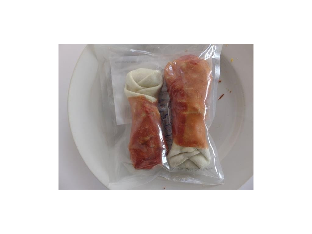 Zloženie: byvolia koža 60%, kuracie mäso 35%, škrob 1,5%, konzervanty.