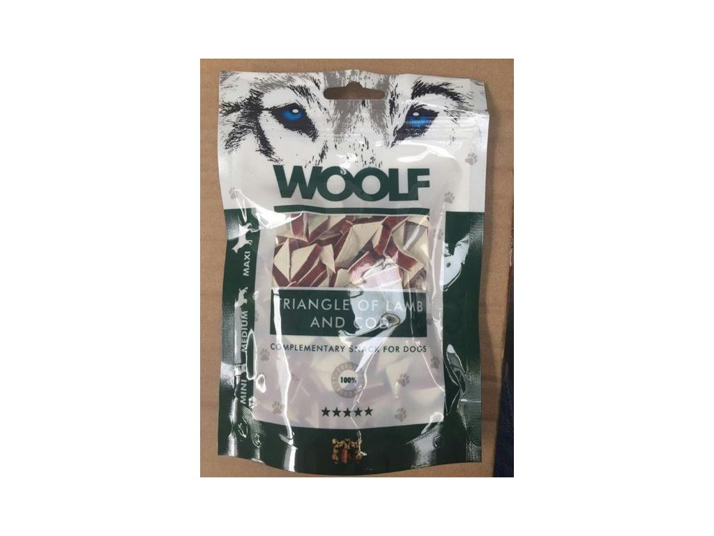 Woolf pochúťka pre psov: sendvičové trojuholníky z jahňacieho mäsa a tresky