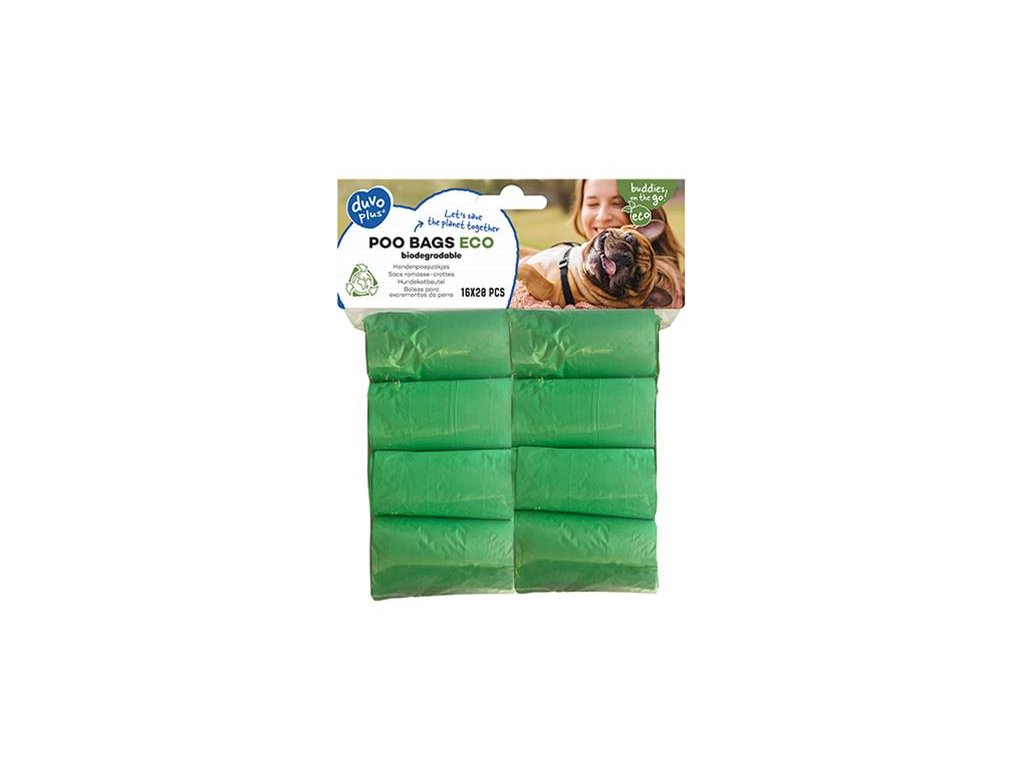 Sáčky DUVO+ na zber psích výkalov, 16x20 biologicky rozložiteľných sáčkov, zelená farba